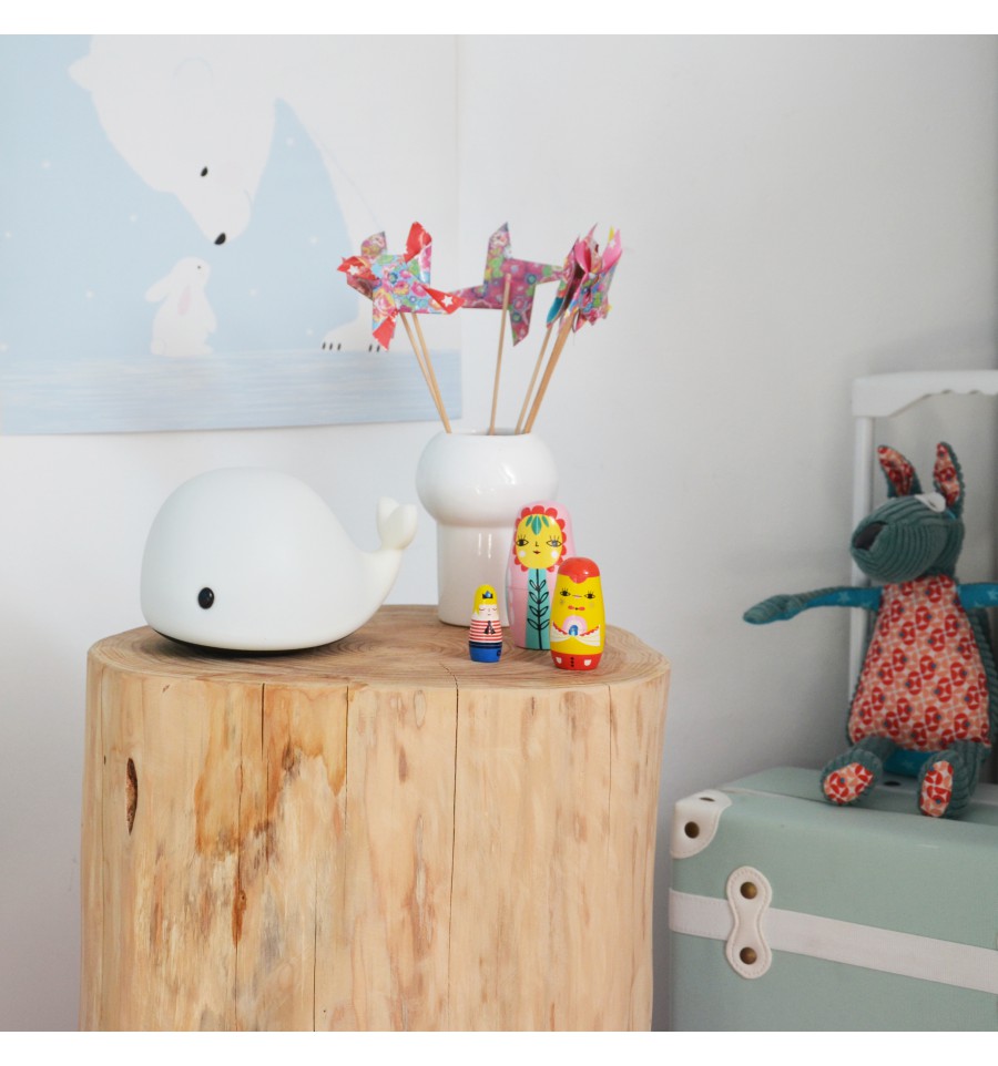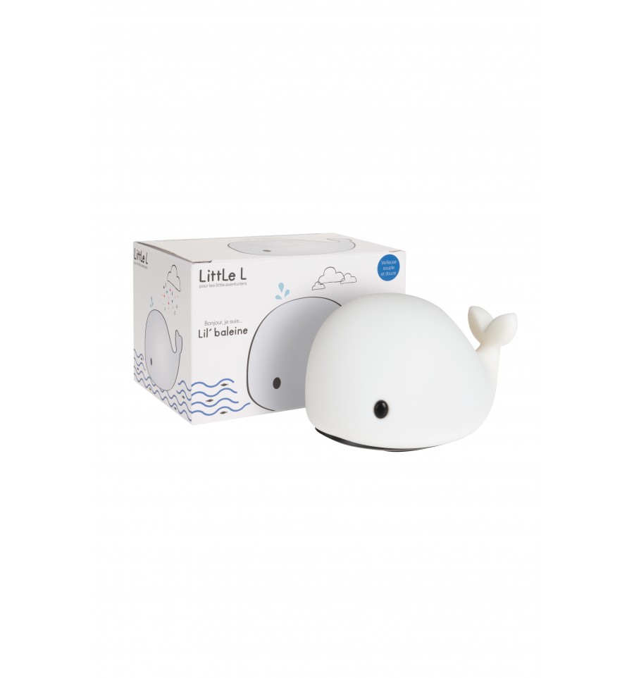 Cette veilleuse en forme de baleine Lil'Baleine est tactile et possède 4 modes d'éclairage : lumière blanche douce, lumière blanche intense, lumière de couleur changeante (7 couleurs possibles) ou lumière de couleur fixe. Votre enfant pourra choisir la lumière qui lui convient.