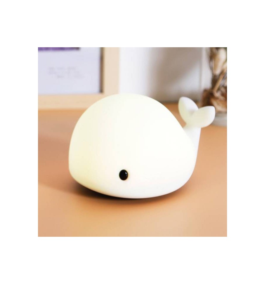 Cette veilleuse souple en silicone en forme de baleine fera le bonheur de vos enfants. Très douce au toucher, ils pourront la câliner et dormir avec elle dans les bras.