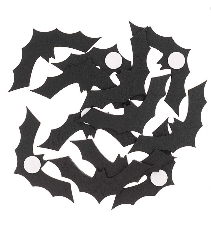 Ce sachet contient 12 autocollants décoratifs en bois et en forme de chauve souris, parfaits pour une déco d'Halloween ou une soirée à thème sur Batman.