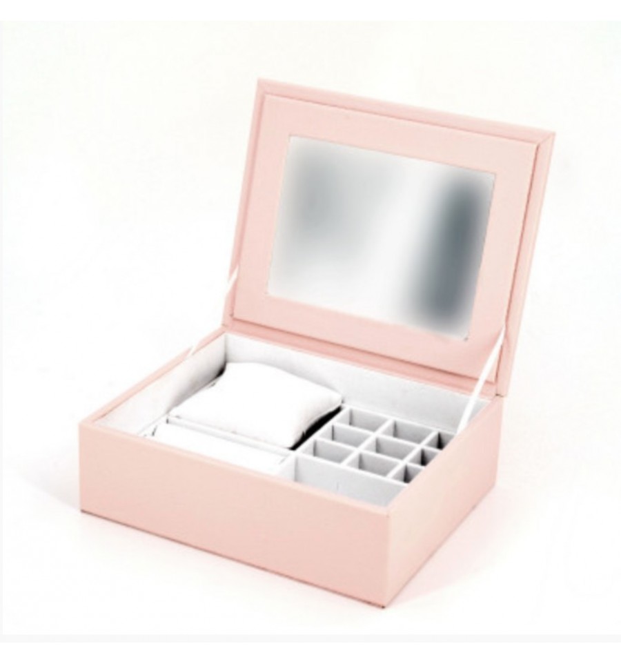 Un grand miroir se trouve à l’intérieur du couvercle : il vous permet d’essayer vos bijoux et de vous maquiller en toute confiance.