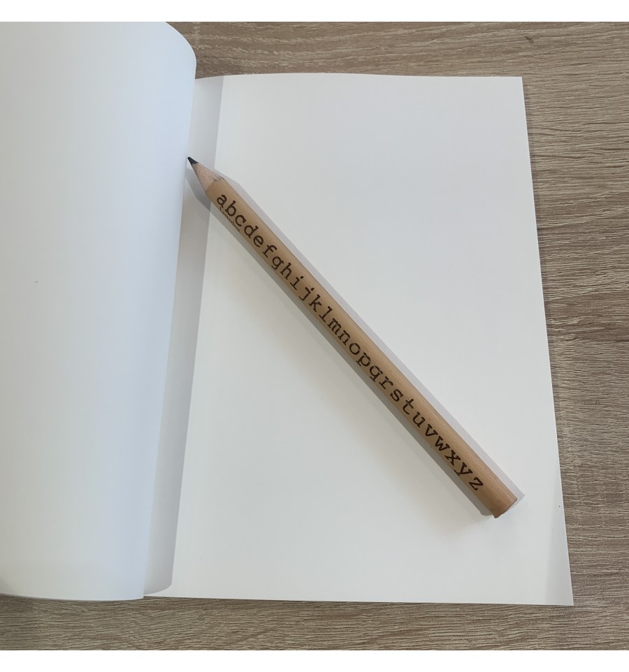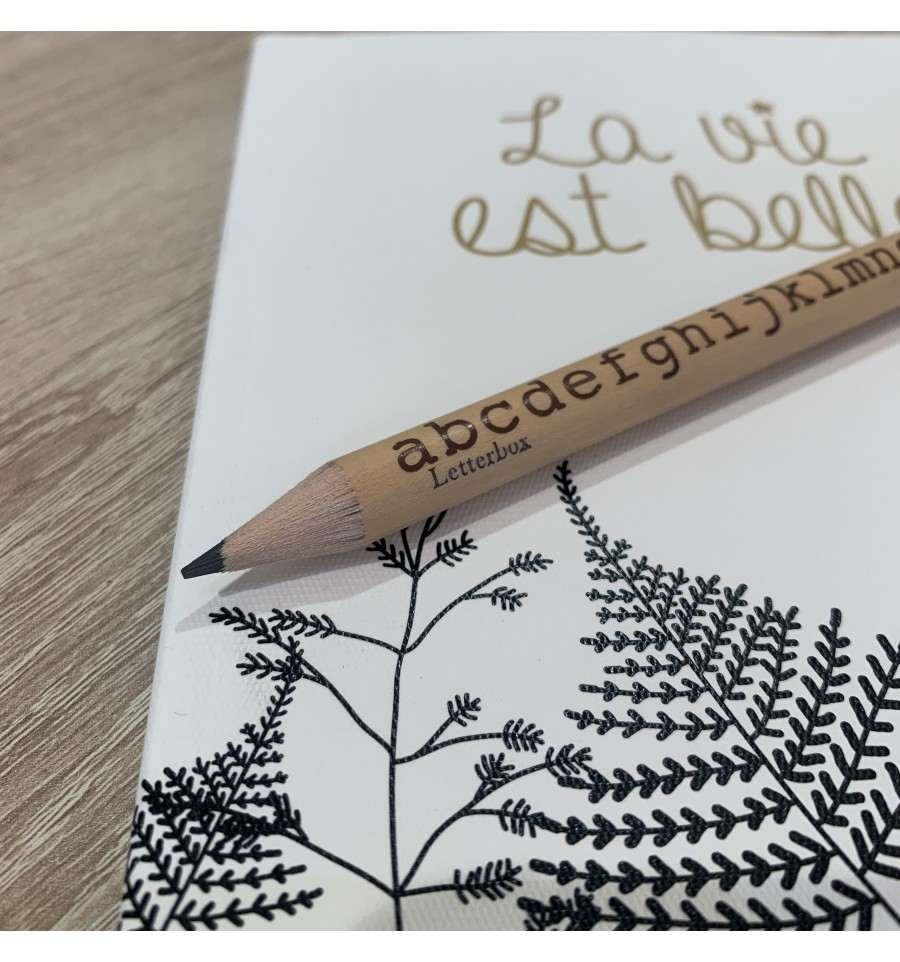 Un crayon à papier en bois où l'on retrouve toutes les lettres de l'alphabet de A à Z !