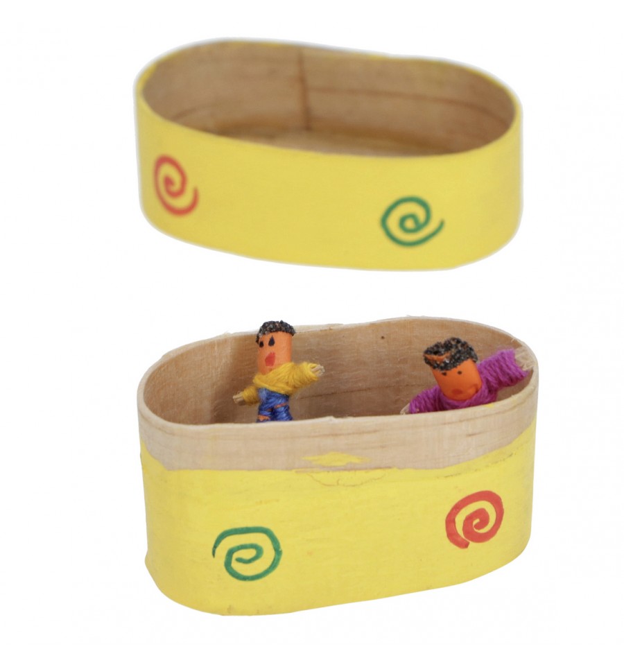 Voici une boîte en bois qui cache de petits personnages très précieux. (6 en tout)
