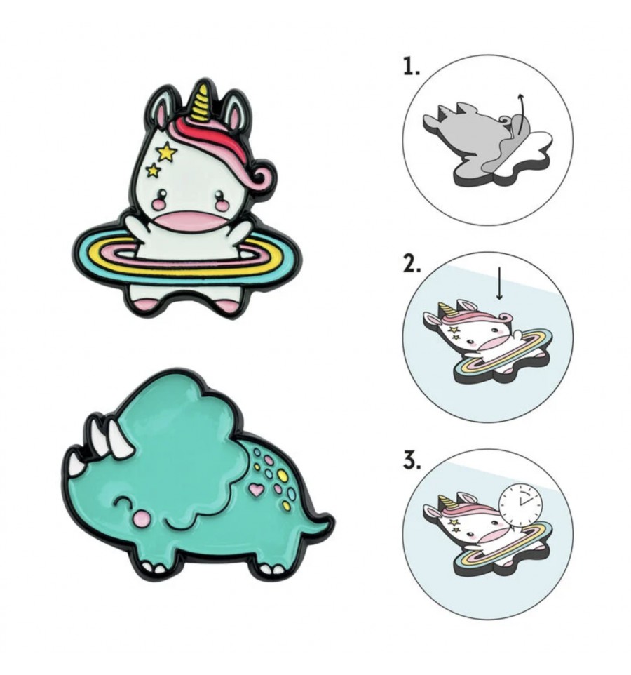 Set de 2 autocollants en métal Licorne / Dinosaure - Legami