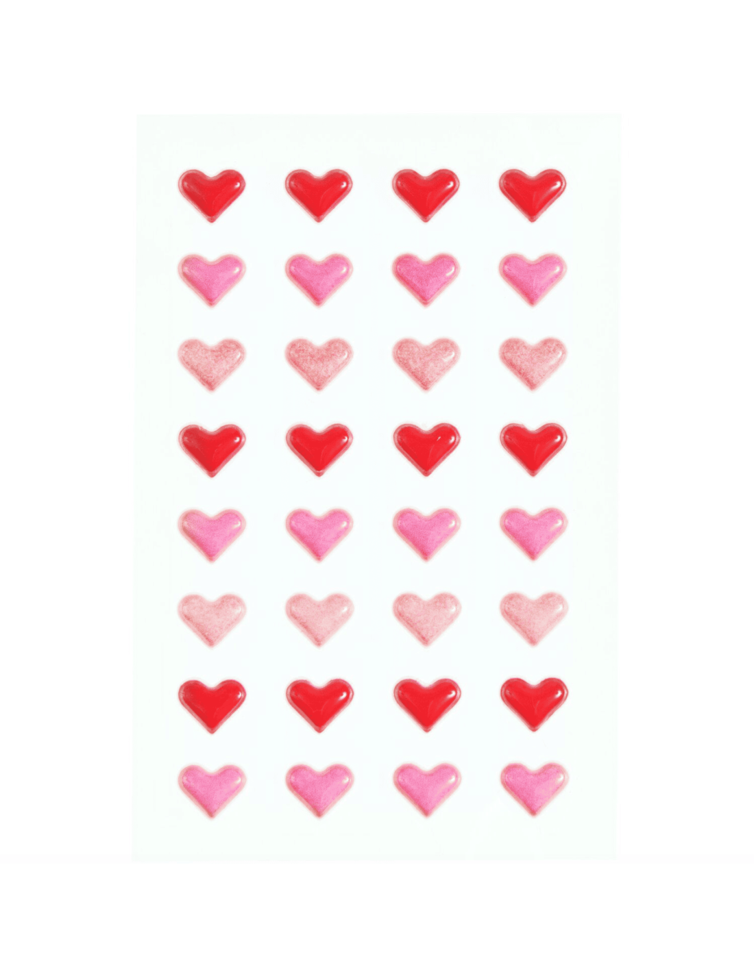 Le pack comprend 32 stickers (3 couleurs de coeurs différentes).
