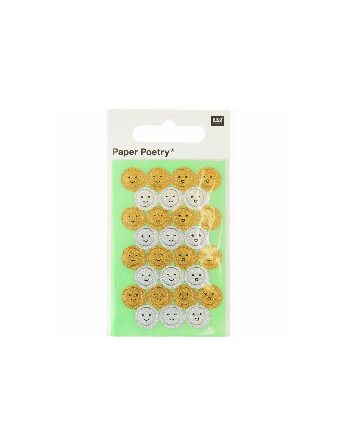 Dans ce pack d'autocollants, retrouvez 4 formes de visage différents, aussi bien en doré qu'en argenté. Trop mignon !!
