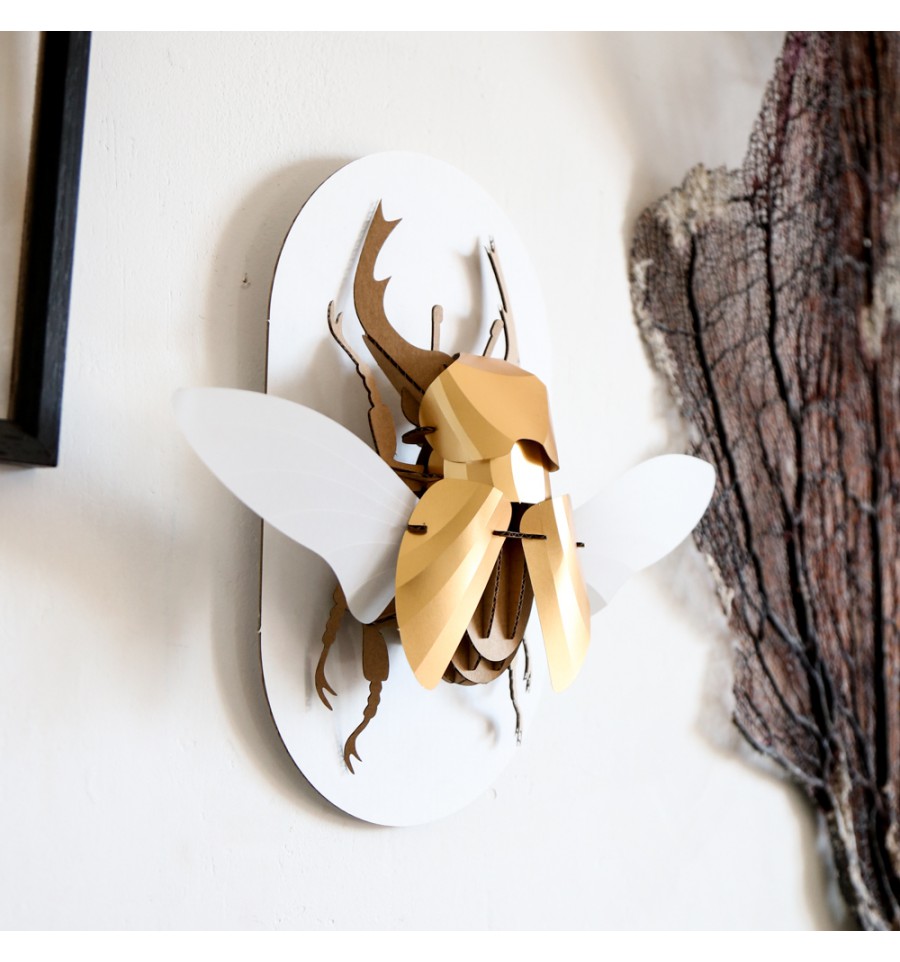 Géniale idée de ce laboratoire expérimental du papier néerlandais Assembli qui propose après les trophées en papier en DIY, une série d'insecte de la famille des coléoptères.