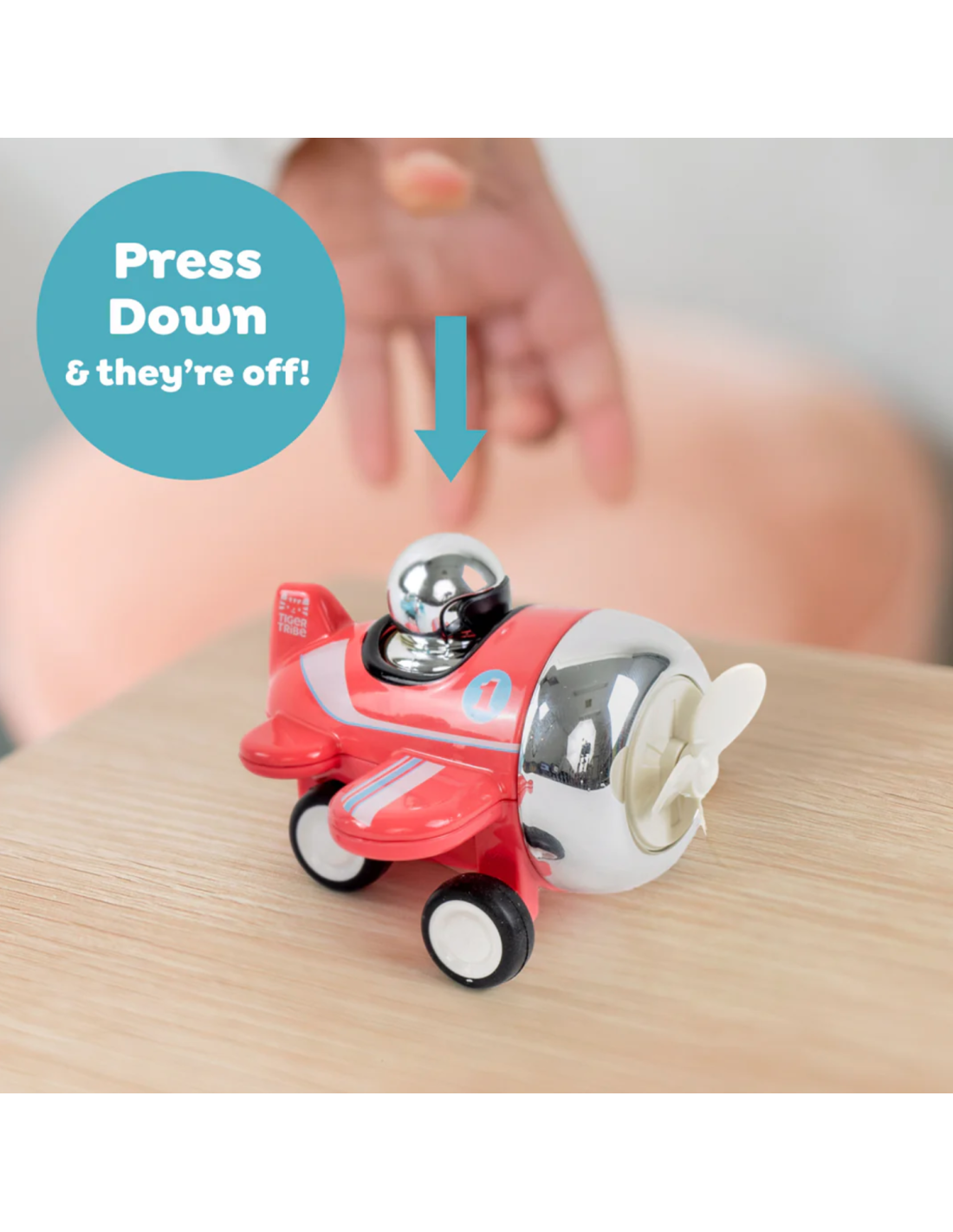 Il suffit d'appuyer sur le dessus de l’avion pour le propulser vers l’avant, offrant des heures de jeu à vos petits loups.