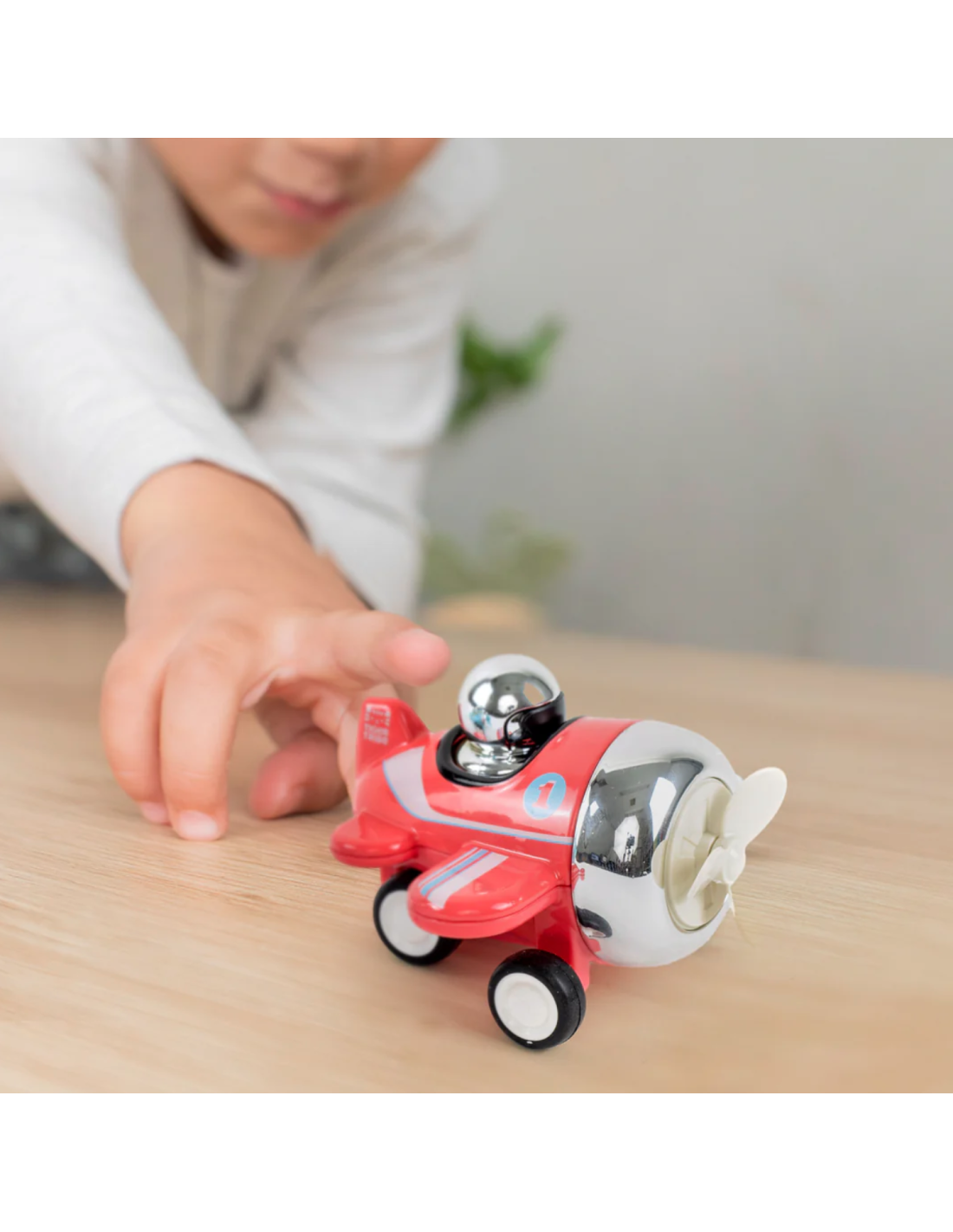 Une jolie couleur rouge, des parties chromées et un numéro 1 sur les flancs : pas de doute, c'est bien un avion de course. Facile à manipuler, il stimulera la motricité et l'imagination de vos petits pilotes, dès 3 ans.