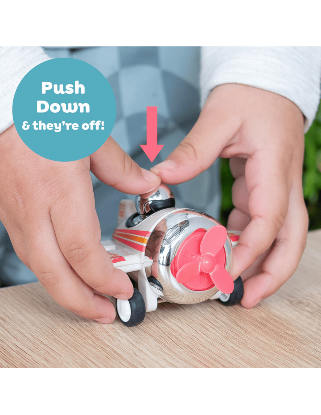 Il suffit d'appuyer sur le dessus de l’avion pour le propulser vers l’avant, offrant des heures de jeu à vos petits loups.